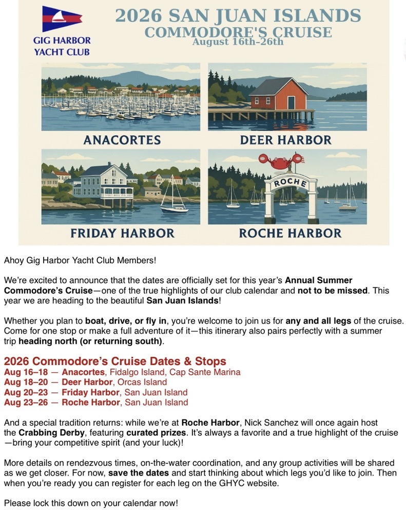 where members gather at a favorite marina or drop the hook and raft up at a favorite anchorage.